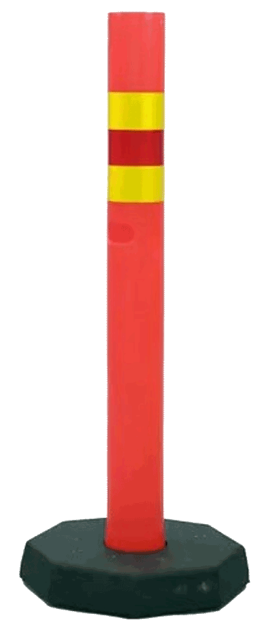 Oranssi sulkupylväs kumijalustalla. Korkeus 1000 mm. 8-kulmainen kumijalusta.